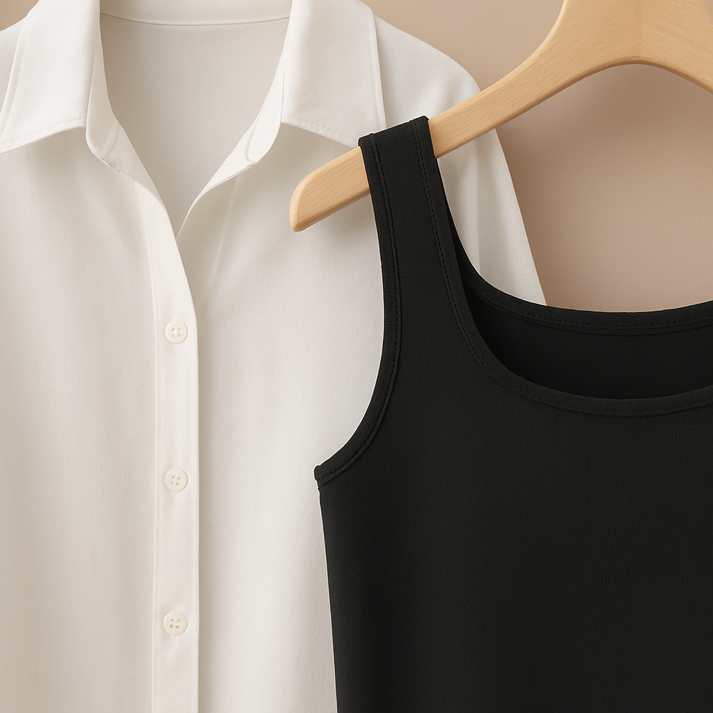 This three-piece look combines a silky-soft modal blend button shirt, structured wide-leg trousers, and a stretch-fit tank for a refined balance of flow and shape. With a gently pleated waist and subtle drape through the leg, every detail is built to flatter and move with ease.