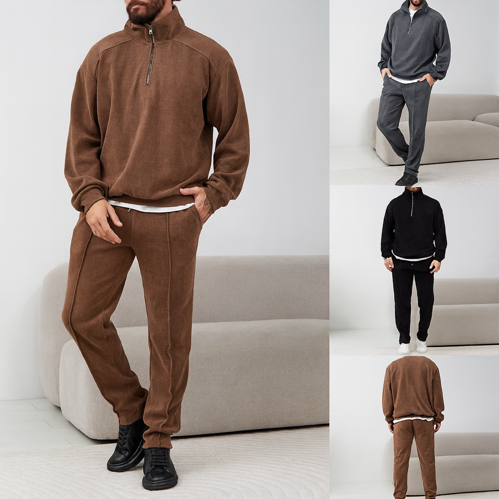 Crafted from ultra-soft brushed fleece, this set wraps you in warmth without adding weight. The half-zip pullover pairs with tapered lounge pants for a clean look that feels at home indoors or styled on the go.